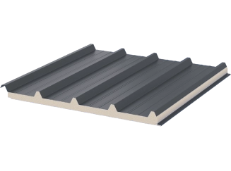 Трехслойная кровельная сэндвич-панель с PIR-наполнителем; цвет снаружи — RAL 7016; цвет внутри — RAL 9003