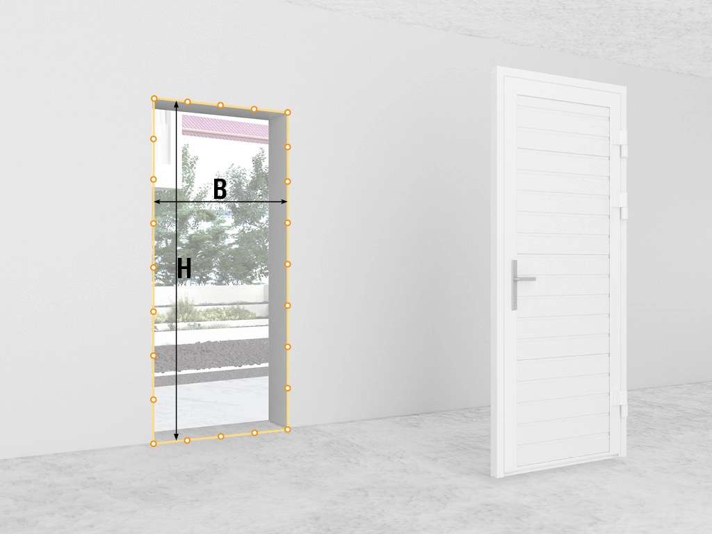 Замерьте высоту проема (H) от выведенного, чистого пола. Для правильного замера необходимо знать точное положение нулевой отметки. Запишите максимальное значение