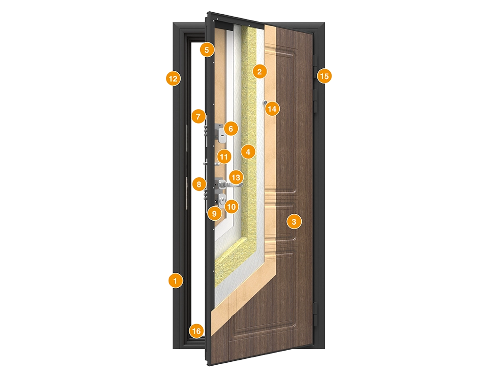 Для защиты от холода и шума по периметру дверной рамы проложен трехконтурный уплотнитель.