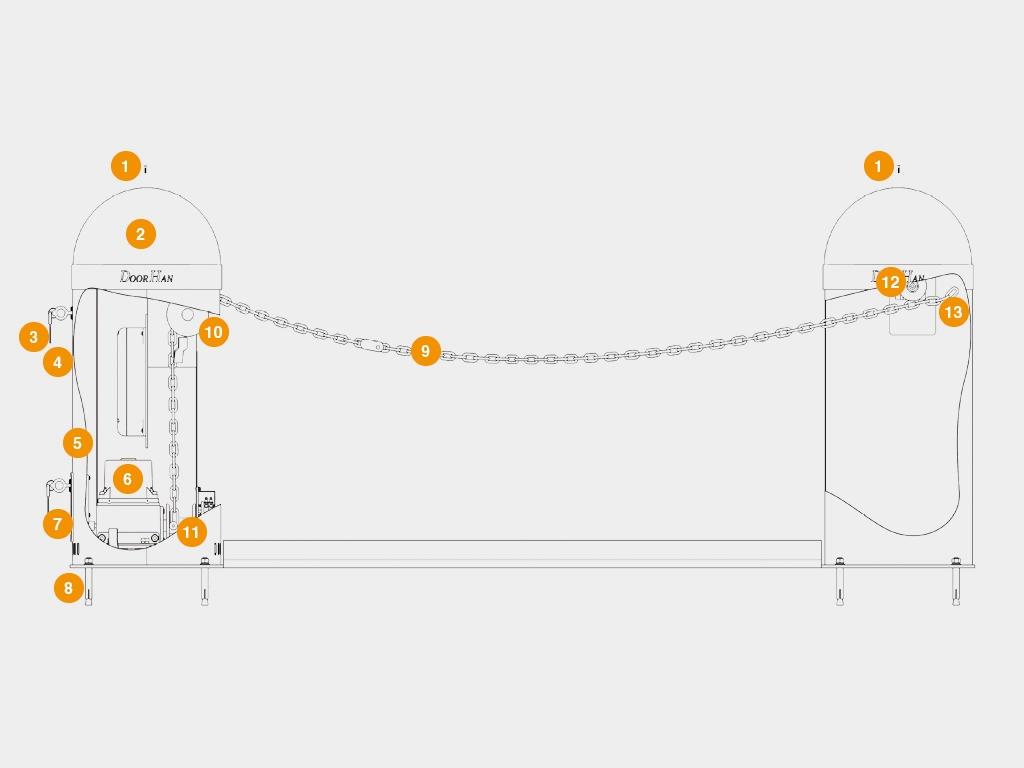 Цепной барьер перекрывает въездные проемы шириной от 7 до 15 м. Его используют для организации контролируемых въездов на огражденные периметры. Устройство ограничивает и контролирует въезд на стоянки, парковки.