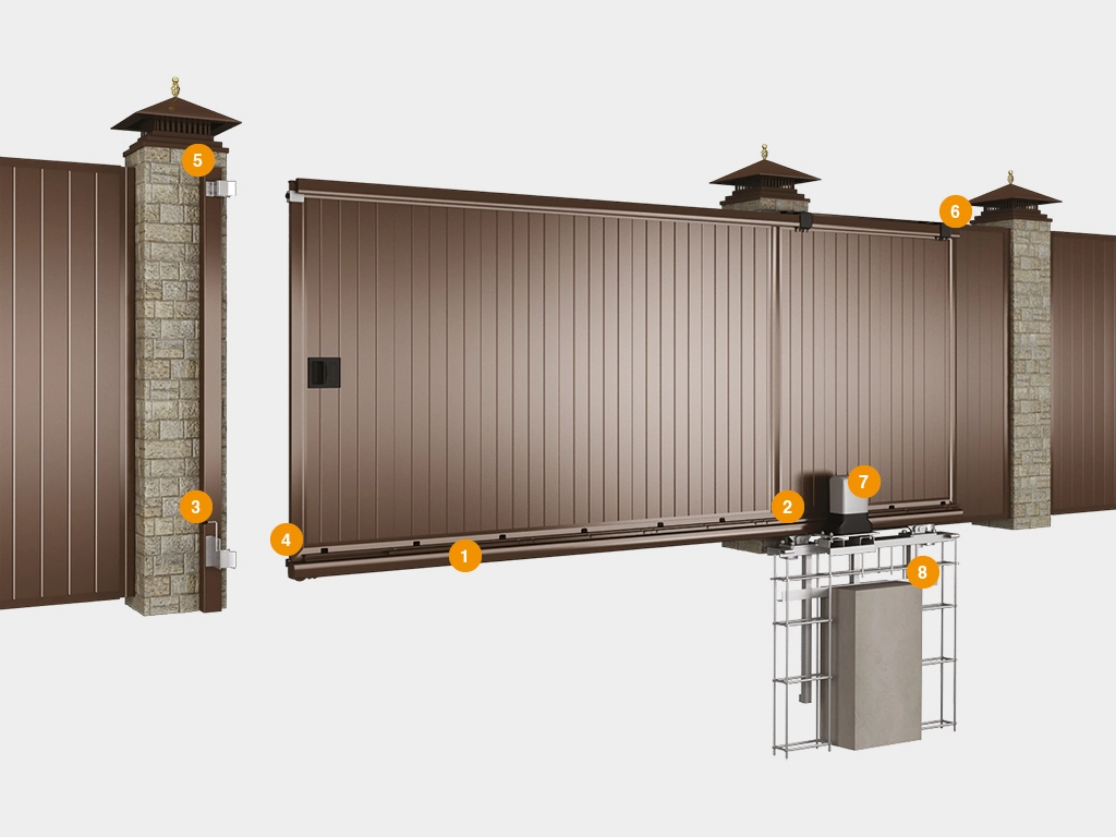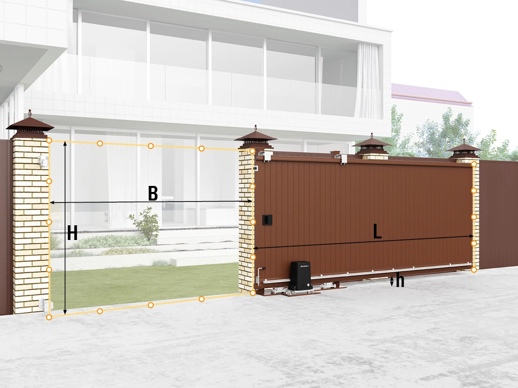 Комплектация откатных ворот SLG-A DoorHan может быть дополнена силовой рамой, электроприводом, сигнальной лампой, фотоэлементами.